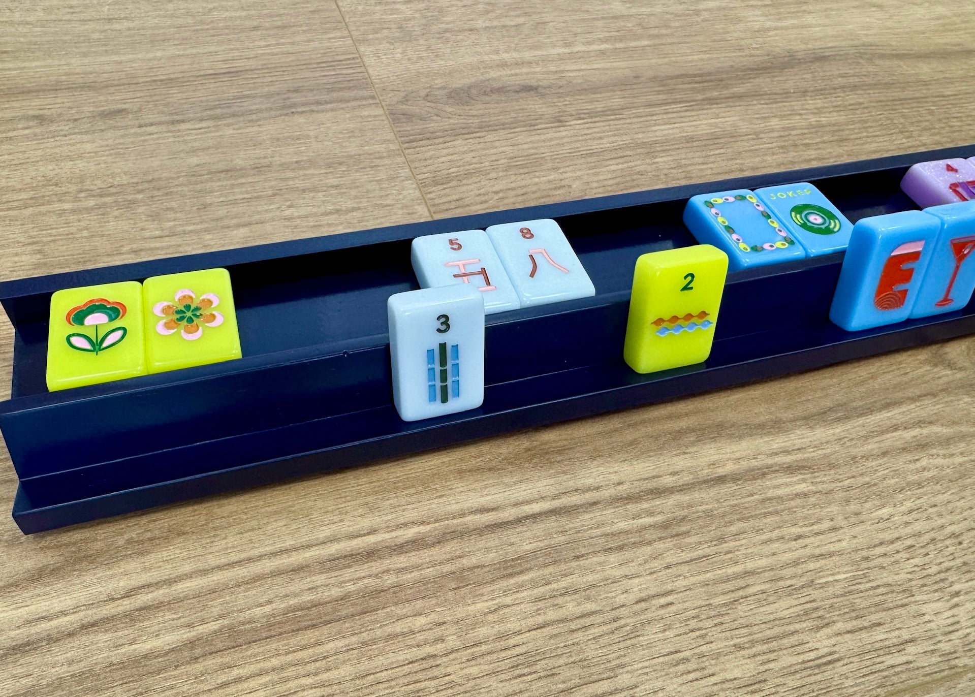 I love my new wooden racks from Peace Love Mahjong! I will be ordering another set soon! They are the right size to fit all of your tiles. They are beautifully crafted and I love the magnetic pusher!