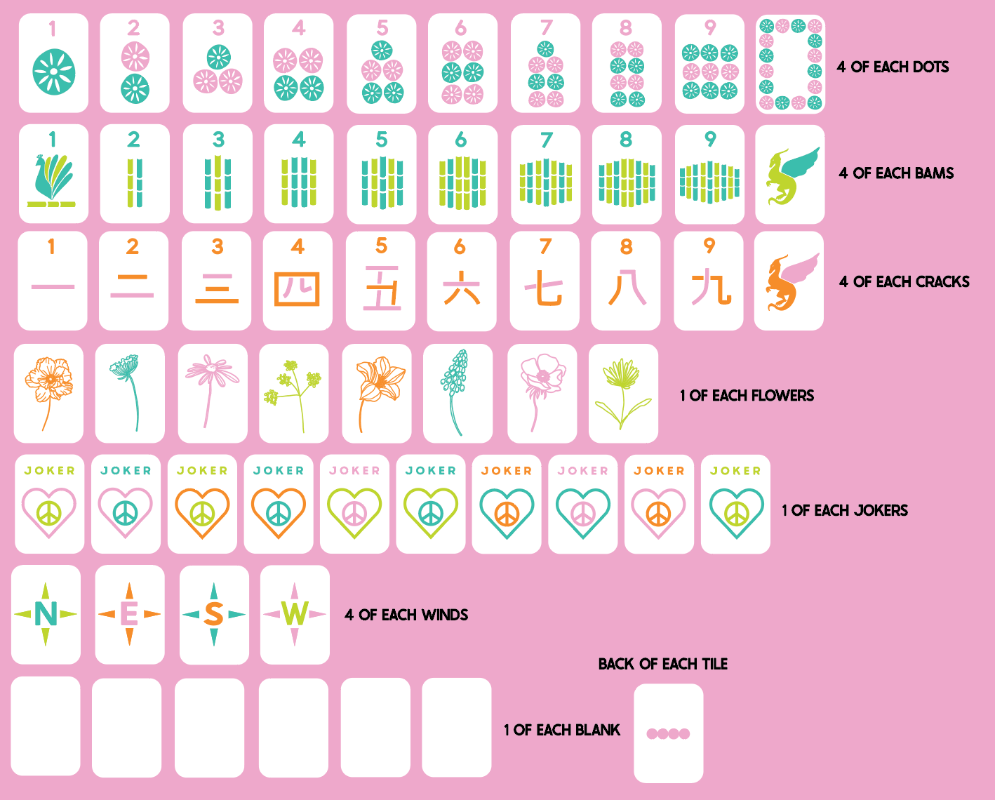 • 160 travel-sized mahjong tiles (1" x 0.75" x 0.24")